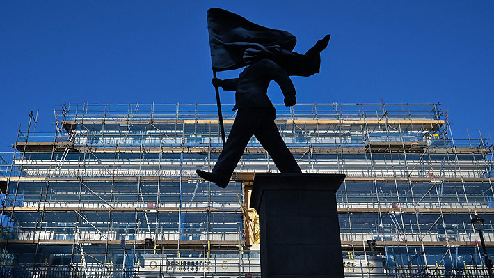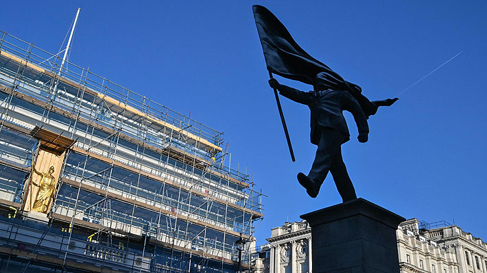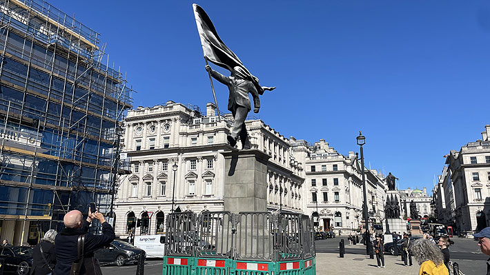 las autoridades instalaron un cerco de vallas metálicas en torno a la estatua, que se ubica en la avenida Waterloo Place, donde se erigen monumentos a personalidades como Eduardo VII o la enfermera Florence Nightingale y a los Caídos en la Guerra de Crimea.