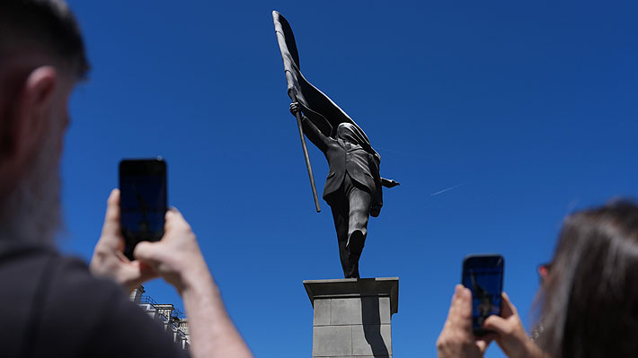 Revisa algunas fotos de la estatua con la supuesta firma de Banksy