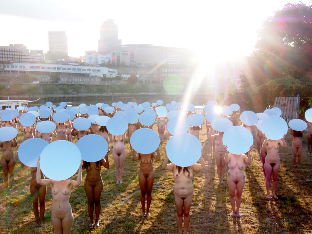 El fotógrafo estadounidense Spencer Tunick dejó claro que la puesta en escena tenía motivos políticos, un mensaje dirigido a Trump.