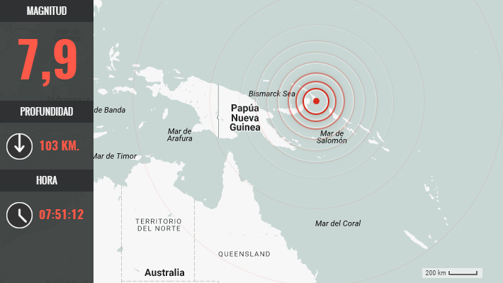 SANTIAGO.- Un terremoto de 7,9 ° Richter sacudió esta mañana a Papúa Nueva Guinea, ante lo cual el SHOA de la Armada descartó que una amenaza de tsunami para las costas de Chile.