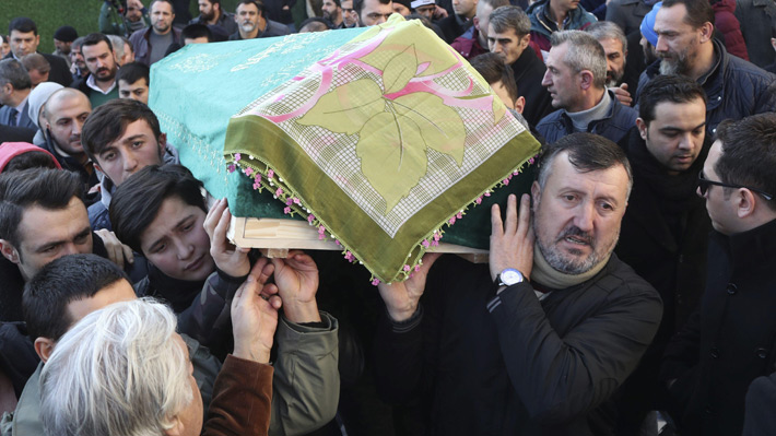 Familiares portan el féretro de Bsura Kose, de 19 años, una de las víctimas del atentado en el club Reina de Estambul.