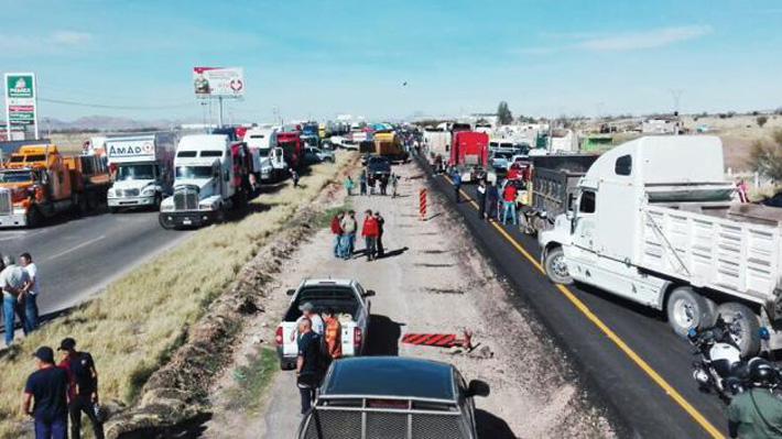 Unos 100 manifestantes cerraron la autopista que va a la Ciudad de Juárez, causando un embotellamiento de más de mil vehículos. En la capital, unos 120 camiones de carga se detuvieron frente a las instalaciones del Premex.