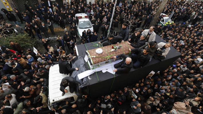 "Adiós compañero", escribió una mujer en un cartel. Estaban presentes en la universidad personalidades políticas y militares de todas las corrientes. Entre ellas el Presidente moderado Hassan Rohani y el general Ghassem Suleimani, jefe de operaciones exteriores de los Guardianes de la Revolución, fuerza de élite iraní.