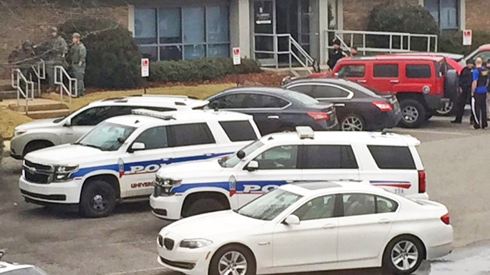 Los oficiales del campus enviaron una alerta en Twitter, diciendo que junto a la policía de la ciudad recibieron un reporte de un robo con rehenes en la sucursal del banco Union Credit en dicho campus universitario.