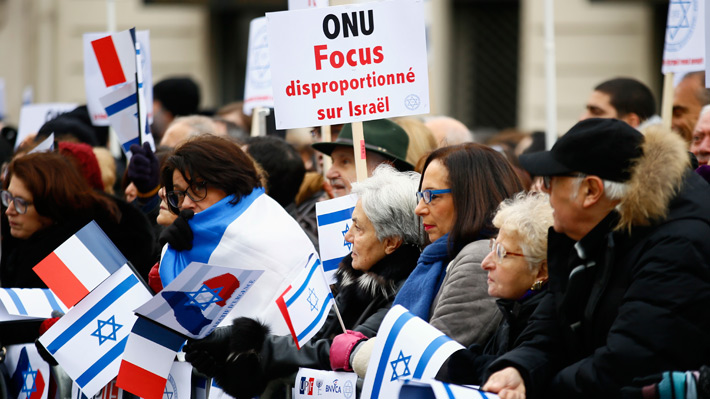 Manifestantes protestan en la capital gala en medio de las negociaciones para alcanzar la paz en Medio Oriente.