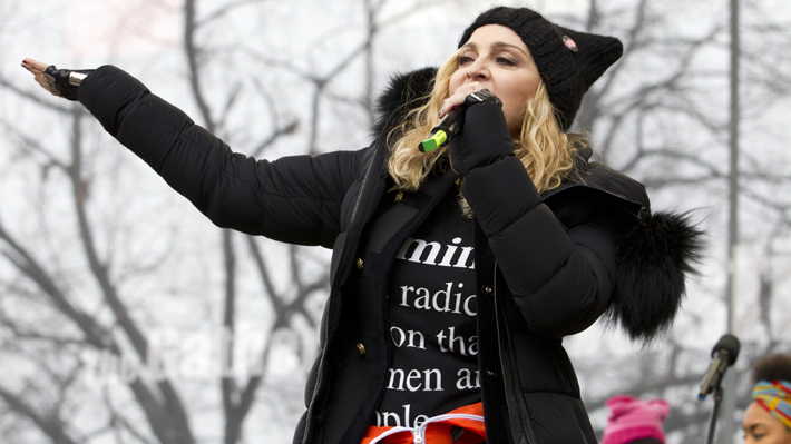 La diva del pop Madonna hizo una aparición sorpresa vistiendo su propio gorro con orejas de gato, aunque negro. "Bienvenidos a la revolución del amor", dijo al subirse al escenario. "A la rebelión. A nuestra negativa como mujeres de aceptar esta nueva era de tiranía", dijo.