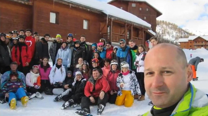 El profesor de Ed. Física solía viajar con sus alumnos y otros profesores para disfrutar del ski. En la imagen, el paseo del invierno del año pasado.