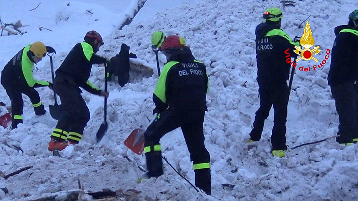 Los equipos de emergencia siguen excavando día y noche bajo los escombros del hotel Rigopiano en busca de las cinco personas que permanecen desaparecidas, de acuerdo al balance hecho por Protección Civil.