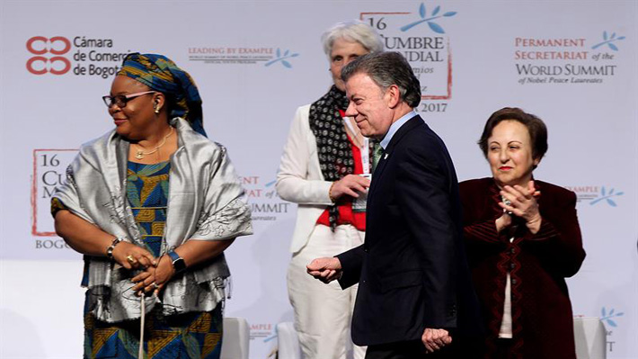 La última jornada de la Cumbre estuvo dedicada a la paz de Colombia y a los retos que enfrenta el acuerdo firmado entre el Gobierno y las FARC en la etapa de implementación de lo pactado, proceso que tuvo el apoyo de los laureados asistentes.