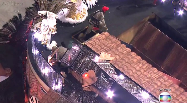 El desfile de "Unidos da Tijuca" comenzó con normalidad, pero cuando su segunda carroza, inspirada en Nueva Orleans, iniciaba el avance por la pista del Sambódromo, la pasarela, instalada varios metros por encima del tercer piso, se desplomó.