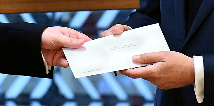 A través de una carta enviada al Consejo Europeo, Theresa May inició el proceso de negociación para la salida de la UE, trámite que se debe desarrollar en un máximo de dos años. Donald Tusk, presidente de la Comisión Europea, tiene 48 horas para entregar un borrador de sus reglas para la negociación a los 27 miembros de la UE.