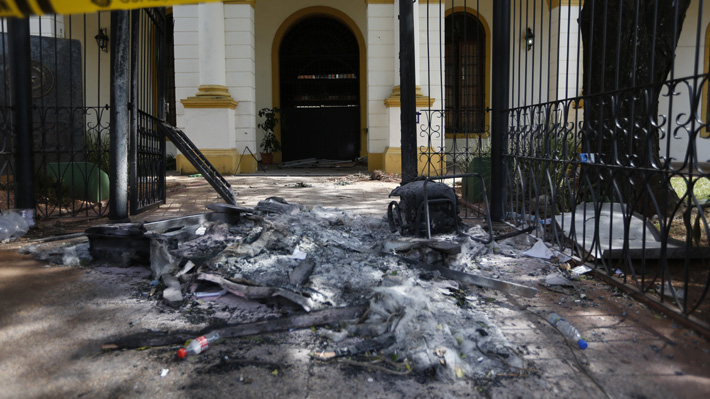 En un rebrote de esa violencia, los manifestantes lograron entrar en el edificio tras destrozar varias cristaleras y provocar un incendio que luego fue sofocado por los bomberos.