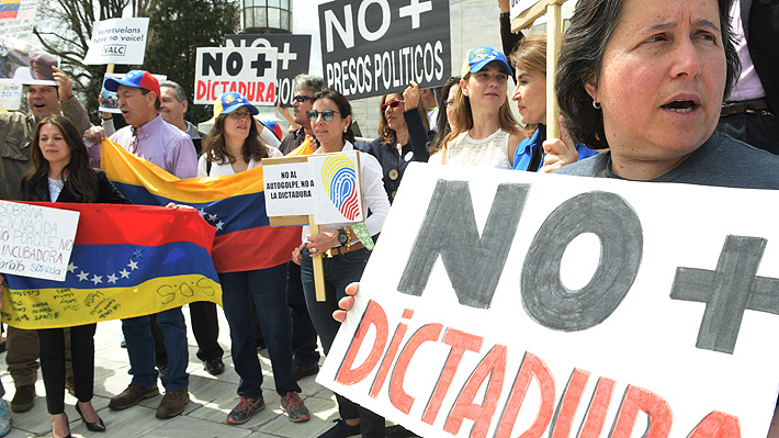 Exiliados venezolanos residentes en Washington salieron a protestar frente a la OEA.