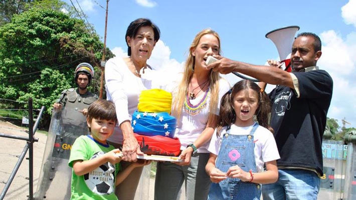 Además, un grupo de seguidores de López junto a su madre Antonieta de López y sus dos hijos menores de edad, realizaron un simbólico acto en las adyacencias de la cárcel.