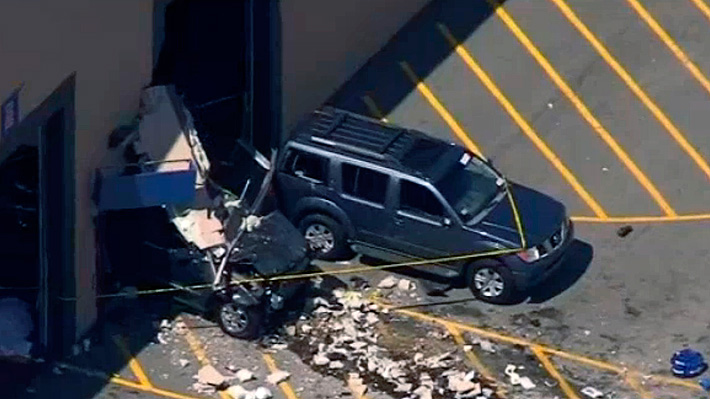 Un jeep Cherokee negro conducido por un empleado de la empresa atravesó el gran edificio a toda velocidad, embistiendo a varias personas.