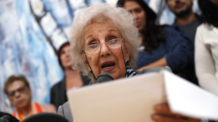 Estela de Carlotto de Abuelas de Plaza de Mayo durante una conferencia de prensa realizada en Buenos Aires en abril.