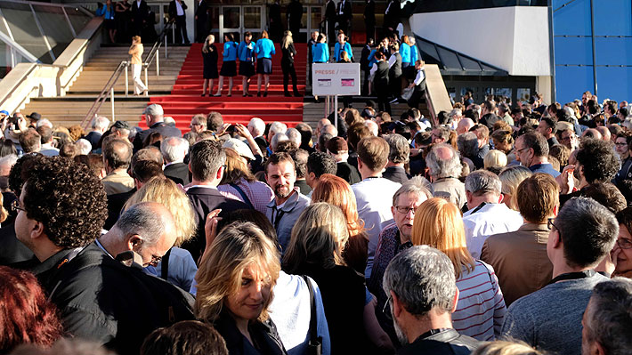 Pasados unos 15 minutos, el festival permitió al público entrar de nuevo al Palacio, ubicado en un extremo del paseo marítimo de la ciudad francesa.
