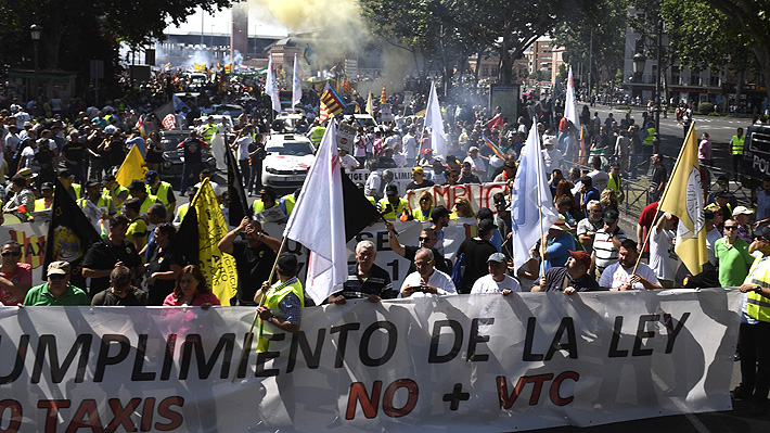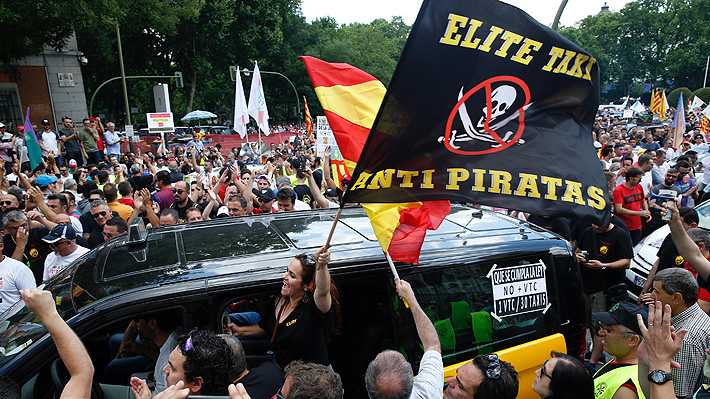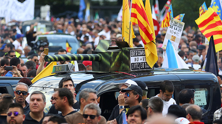 Los sindicatos de taxistas, que ya han hecho otras protestas contra los VTC, aseguran que "está en juego el futuro de 100.000 familias en España" ante la "competencia desleal" de los nuevos servicios.