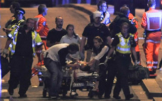La policía acudió a una serie de incidentes que tuvieron lugar en la capital británica. El primero fue un atropello masivo en el popular Puente de Londres, al que le siguieron alarmas en el Mercado Borough y en Vauxhall.