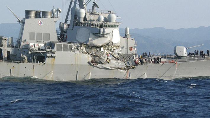 Imágenes transmitidas por la NHK muestran daños considerables en el lado derecho del destructor, de 154 metros de largo y 8.315 toneladas de peso, tras la colisión, que según la Marina de EE.UU. ha abierto una vía de agua en el navío bajo la línea de flotación.