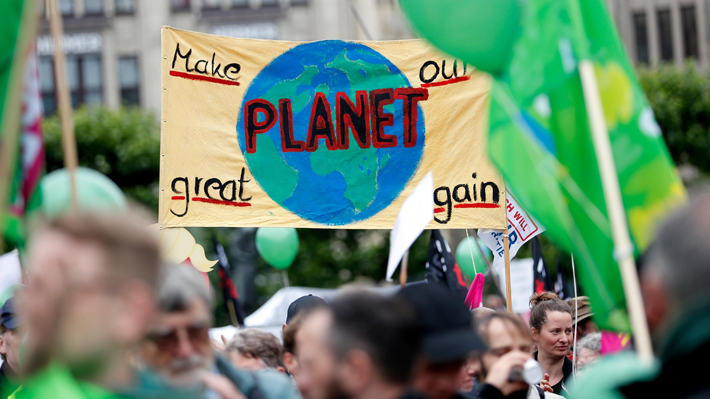 Bajo una fina lluvia y en un ambiente familiar, se concentraron frente a la alcaldía de Hamburgo, donde varios oradores exigieron "otra política", el respeto del medio ambiente y criticaron al Presidente de EE.UU., Donald Trump.