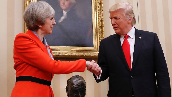 Según la transcripción de una conversación entre ambos obtenida por el periódico dominical, el presidente le pidió a May que intervenga para cambiar la opinión pública, que se ha mostrado muy reacia a que visite este país.