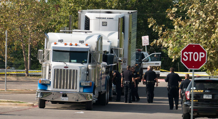 Los inmigrantes fueron hallados en la madrugada del domingo en el camión sin aire acondicionado en el estacionamiento de un supermercado Walmart en la ciudad de San Antonio, en el estado sureño de Texas, cerca de la frontera con México, después de que uno de los inmigrantes se acercó al supermercado a pedir agua.