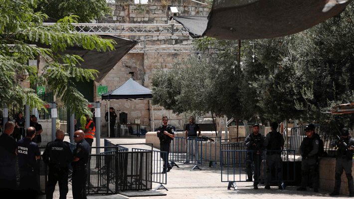 Las tensiones crecieron desde la instalación de los detectores en el complejo en el que está ubicada la mezquita Al-Aqsa después que dos guardias murieran en el lugar tras haber sido alcanzados por disparos el 14 de julio, lo que derivó en los enfrentamientos más sangrientos en años entre israelíes y palestinos.