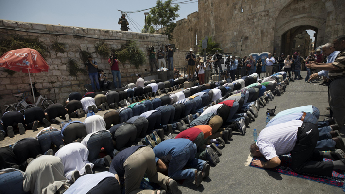 JERUSALÉN.- Las autoridades religiosas musulmanas instaron hoy a los palestinos a volver a orar en la Explanada de las Mezquitas, después de que Israel retirara todas las nuevas medidas de seguridad que había instalado en el ingreso a ese lugar, lo que había generado la molestia de los palestinos, quienes comenzaron a orar en las calles.