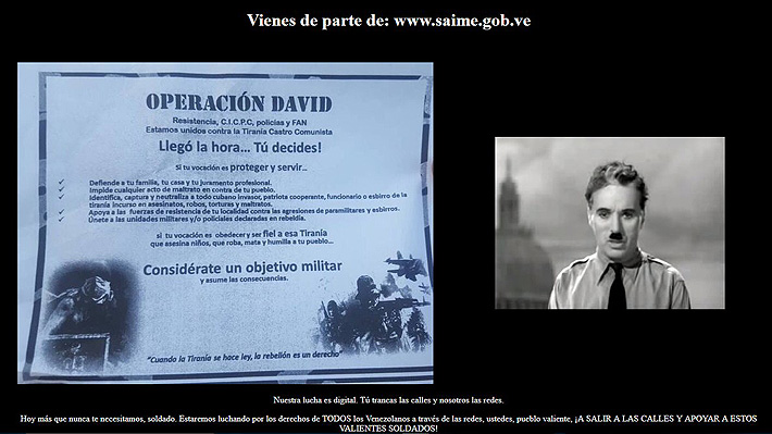 El volante colgado en las páginas tenía el encabezado "Operación David", en referencia a la denominación dada por los soldados que irrumpieron en el fuerte militar la madrugada del domingo y que fueron neutralizados con un saldo de dos de los rebeldes muertos, un herido y siete detenidos.
