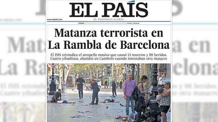 SANTIAGO.- España se convirtió por primera vez en blanco del Estado Islámico (EI). Barcelona y Cambrils fueron los escenarios de dos nuevos atentados terroristas la tarde de este jueves, en los que hasta ahora han fallecido 14 personas.