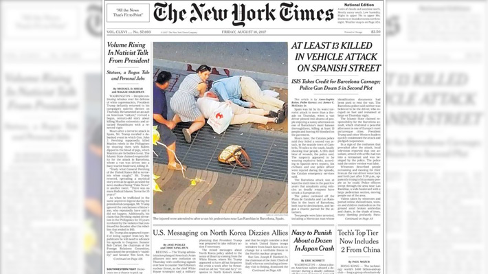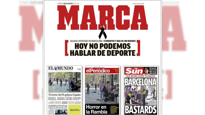 El resto del mundo también ha reaccionado y líderes de distintos países han sentenciado el hecho y dado apoyo a los españoles. Ello también se ha reflejado en las portadas de distintos medios internacionales que han informado sobre los fatídicos sucesos.