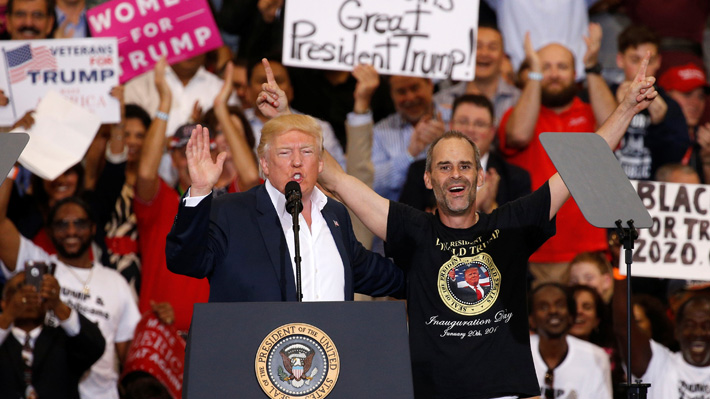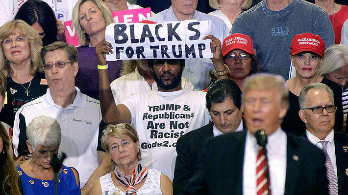 SANTIAGO.- Miles de personas se congregaron este martes en un mitin en Phoenix, Arizona, para ovacionar y dar su apoyo al Presidente de Estados Unidos, Donald Trump, quien pasa por un complicado momento al ser tildado de racista tras el incidente en Charlottesville. Pero además de su encendido discurso, algo llamó la atención de quienes observaban atentos: un hombre negro justo detrás del Mandatario gritando y levantando un cartel con la consigna "Negros por Trump".