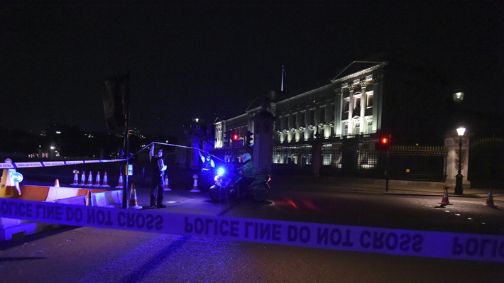 Según lo informado por la Policía Metropolitana, los agentes sufrieron heridas leves y fue detenido delante de la residencia de la reina Isabel II.