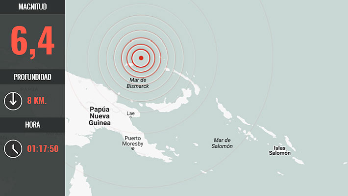 El organismo situó la sacudida a 108 kilómetros al noreste de Lorengau, en la isla papú de Manus, y a 485 kilómetros al norte de Madang, en el norte de la isla de Papúa, la mayor de las que conforman el país y en la que se encuentra la capital Port Moresby.