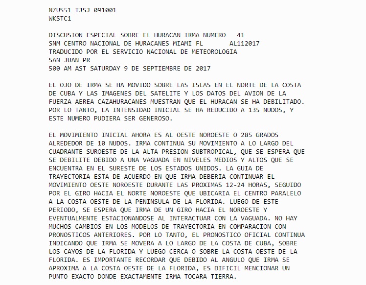 La totalidad de la población de los Cayos no cuenta con energía eléctrica, mientras que el ojo del huracán está a 140 kilómetros al sureste de Key West.