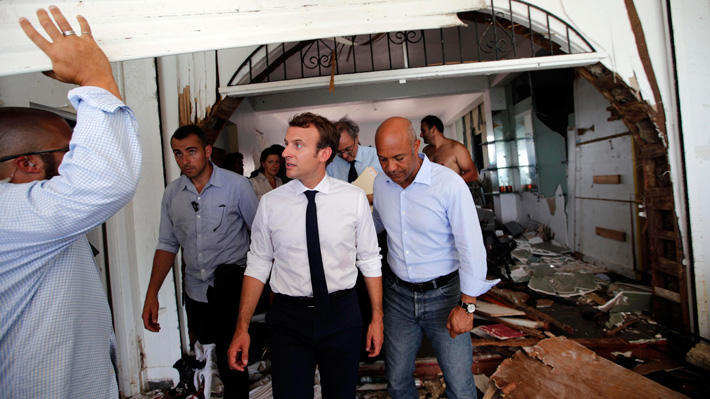 El Presidente francés recorrió la isla San Martín para inspeccionar los daños dejados por el huracán Irma.