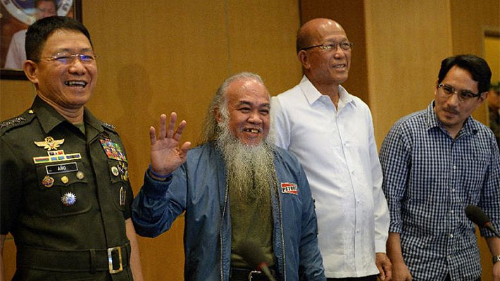 "Gracias y rezo por ustedes, que Dios les bendiga a todos. Recen por mí, por mi recuperación", afirmó Suganob, popularmente conocido como "Padre Chito", sonriendo y saludando a los periodistas.
