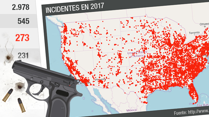 De acuerdo a datos del organismo Gun Violence Archive, en el país norteamericano en promedio ocurre un ataque de este tipo al día y el 2017 han muerto más de 11 mil personas en incidentes con armas de fuego.