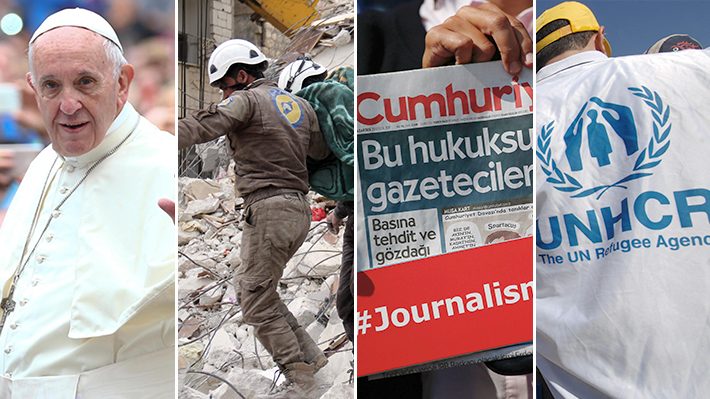 Como ya es tradición, la cabeza de la Iglesia Católica, Jorge Bergoglio, también ha sido nominado. Desde que asumió el cargo en 2013, el Papa Francisco ha mostrado su labor en la lucha en contra de la desigualdad y la pobreza y su preocupación por los refugiados, el combate a la pedofilia y el fundamentalismo.