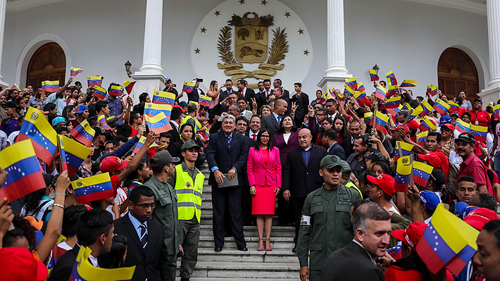 "Quiero felicitar a los gobernadores opositores que ganaron cinco gobernaciones en Venezuela y están formalmente convocados a presentarse ante la Asamblea Nacional Constituyente", expresó Rodríguez al inicio de la ceremonia entre aplausos y consignas en un repleto Palacio Legislativo.