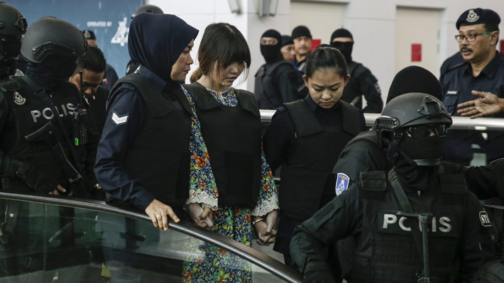 Con un chaleco antibalas, la indonesia Siti Aisyah y la vietnamita Thi Huong fueron conducidas al aeropuerto junto al juez que preside su proceso, sus abogados y representantes de la acusación.