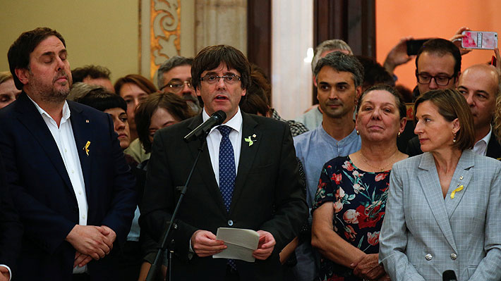 SANTIAGO.- El presidente de Cataluña, Carles Puigdemont, valoró la decisión del Parlamento catalán de aprobar la independencia de la región: "Hoy se ha aplicado un mandamento legítimo".