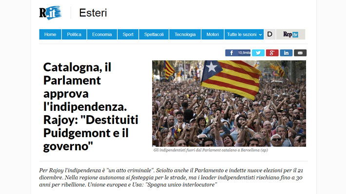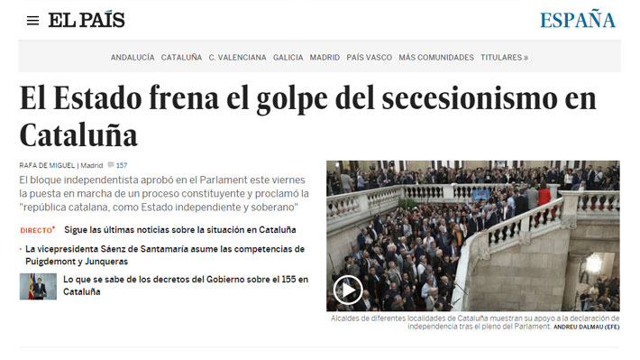 Como respuesta, el Presidente del Gobierno español, Mariano Rajoy, ordenó la destitución de Puigdemont y de todo el Parlamento catalán, poniendo en ejecución el artículo 155 de la Constitución, y llamando a elecciones locales para el 21 de diciembre.