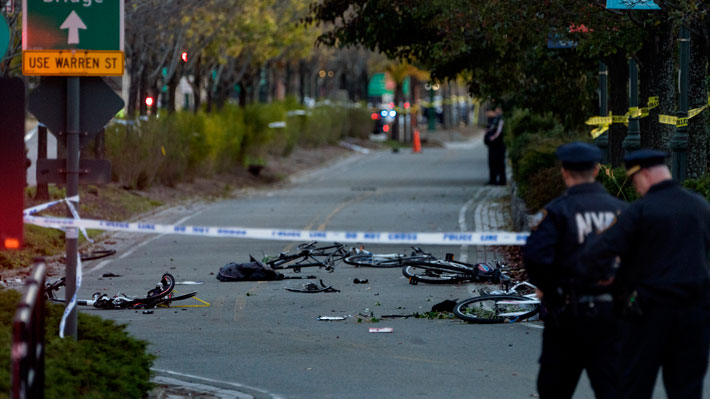 Ocho personas murieron y más de una decena resultaron heridas el martes cuando el conductor de una camioneta arremetió contra ciclistas y peatones en el sur de Manhattan y luego se estrelló con un bus escolar en lo que las autoridades catalogaron como un "acto terrorista".