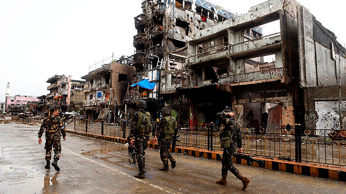 La guerra en esta urbe de 200.000 habitantes al oeste de Mindanao comenzó el pasado 23 de mayo, cuando un grupo de varios centenares de insurgentes se levantó en armas enarbolando banderas del EI y quemando a su paso escuelas, hospitales y edificios públicos.