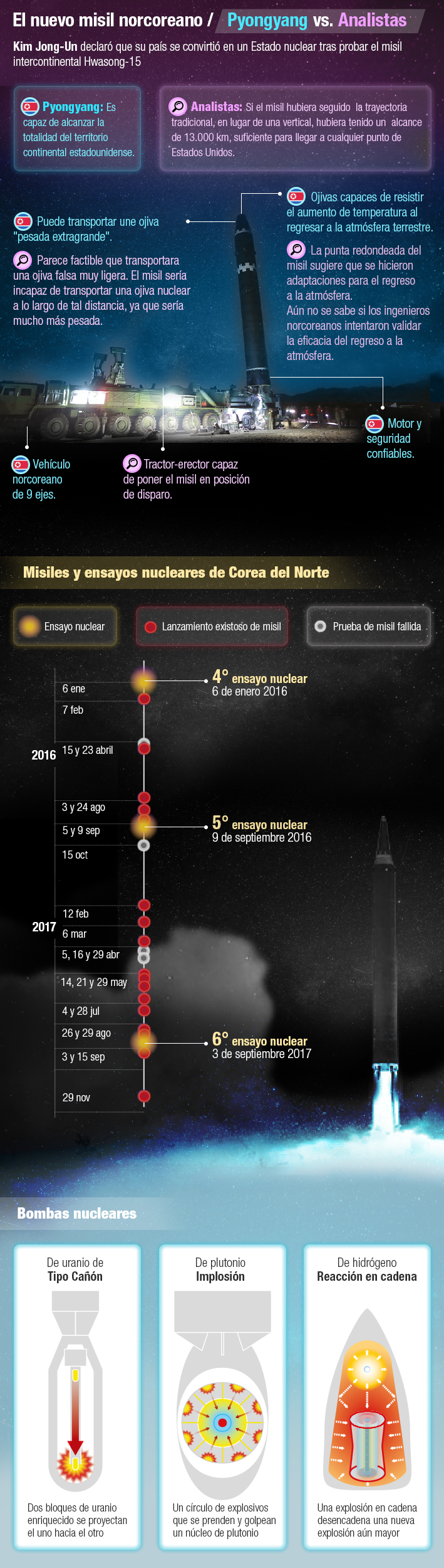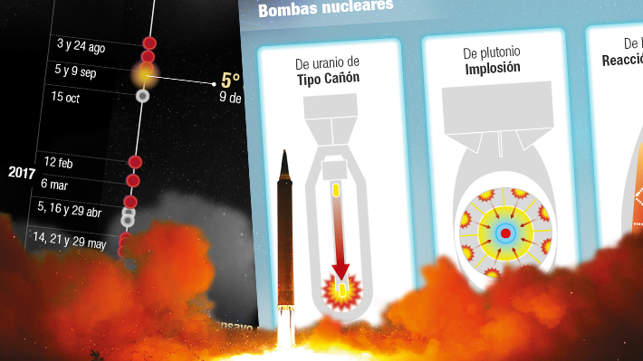 Infografía: AFP | Adaptación web: Johanna Mellado, Emol | Fuentes:Agencia de prensa norcoreana KCNA (oficial) 29 de noviembre de 2017, KCNA vía KNS, Manhattan Project, techinsider.io