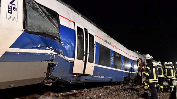 El choque ocurrió hacia las 19:30 locales cuando un tren de pasajeros de la compañía privada británica National Express colisionó con uno de mercancías de la compañía nacional de frete DB cargo que estaba parado.