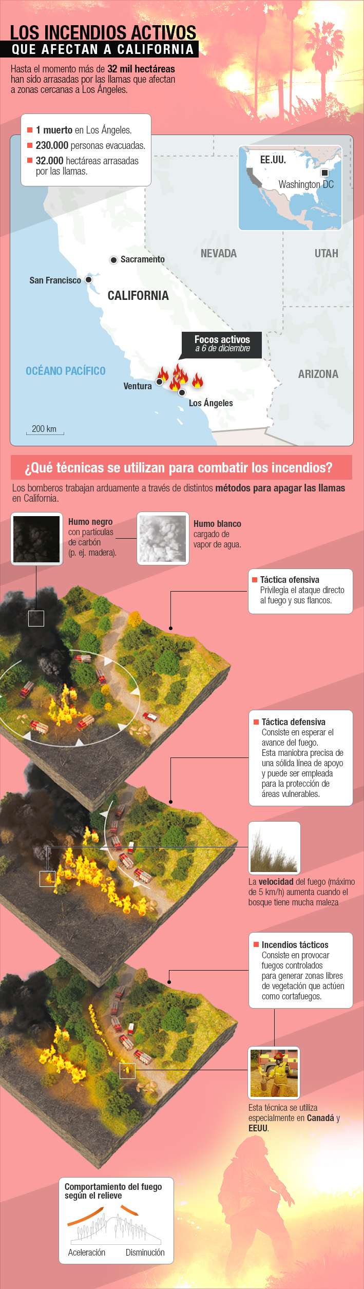 El incendio suma más de 32 mil hectáreas arrasadas y unas 230 mil personas evacuadas. Conoce aquí las tácticas para detener su avance.
