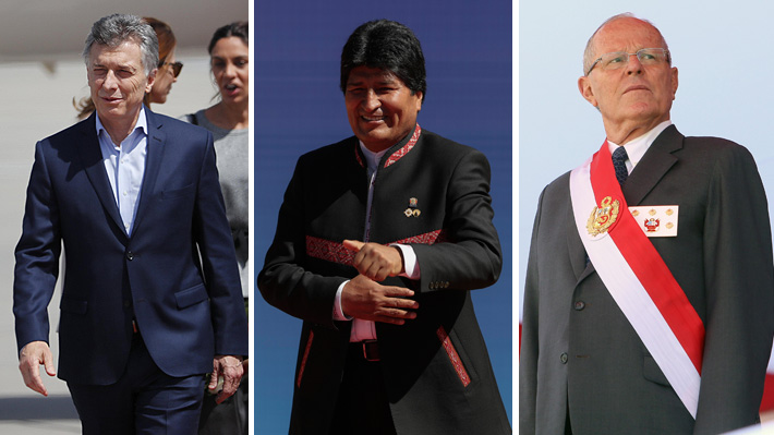 Los presidentes Mauricio Macri (Argentina), Evo Morales (Bolivia) y Pedro Pablo Kuczynski (Perú).